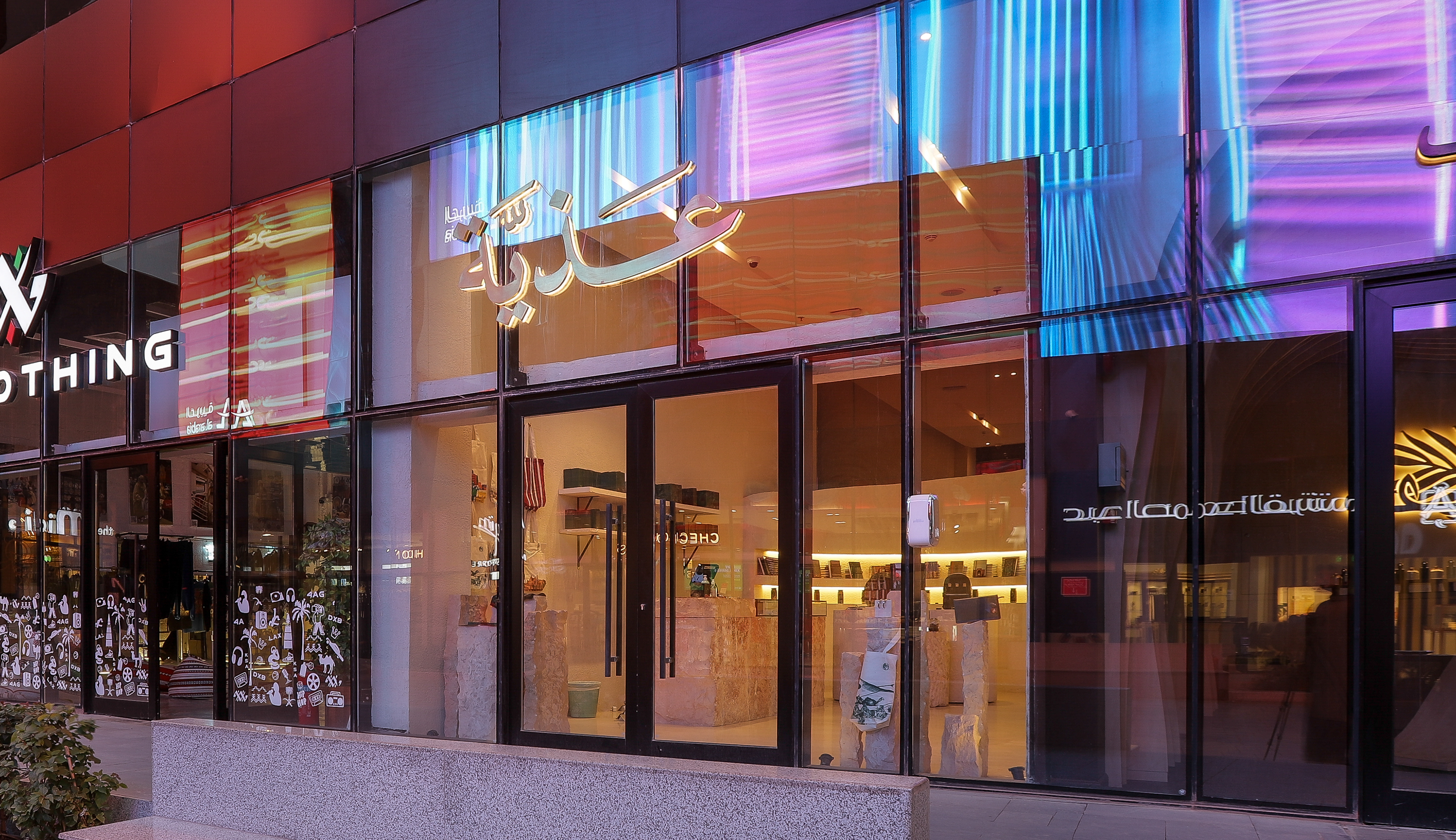 يتكون المشروع من مساحة لعرض المنتجات ومنطقة الكاشير ومستودع خلفي للتخزين ويتميّز بهويته النجدية والأحجار التي تم قصّها وتوريدها من صحراء المملكة العربية السعودية
